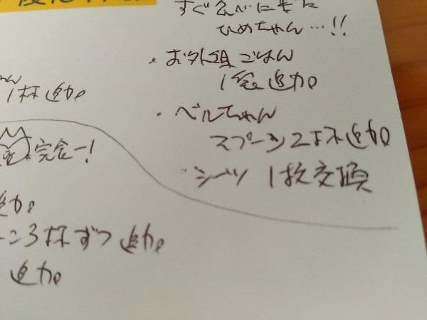 私が書いておいた「お願いメモ」には、毎日細かく報告を残してくれています。
