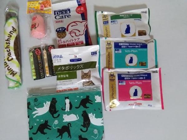カリカリとポーチとボールペン、あとはハンドタオルかな?