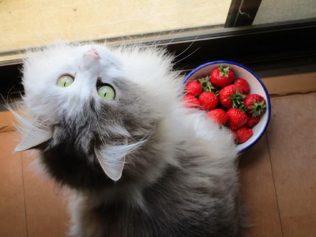 お庭の🍓あげるから、ご機嫌直してね~♪