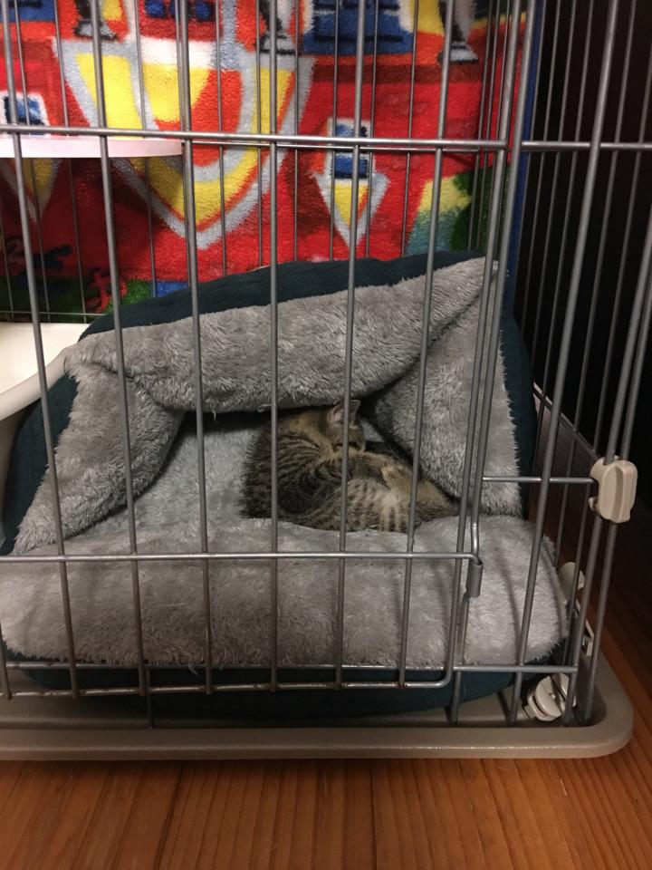 新しく保護した子猫が我が家の一員に加わりました。キジトラの男の子です。あまりに人慣れしてるので捨てられたのかも…まだ2ヶ月なってなさそうです。酷いことする人もいるもんです。