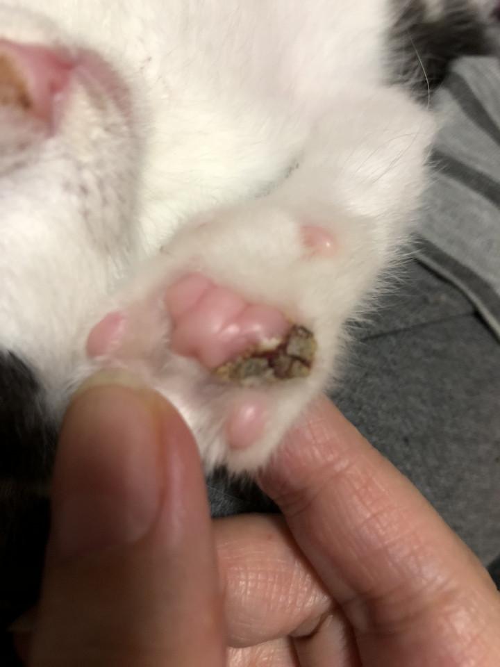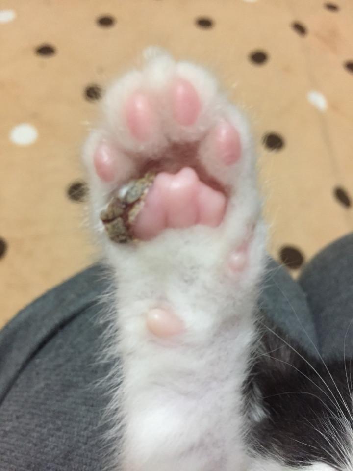 んで、こちらがチョーミーの肉球の怪我?