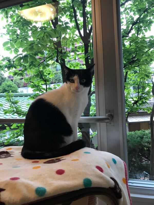 窓の外を見るのが大好きで一生懸命外を見てパトロールしています!
