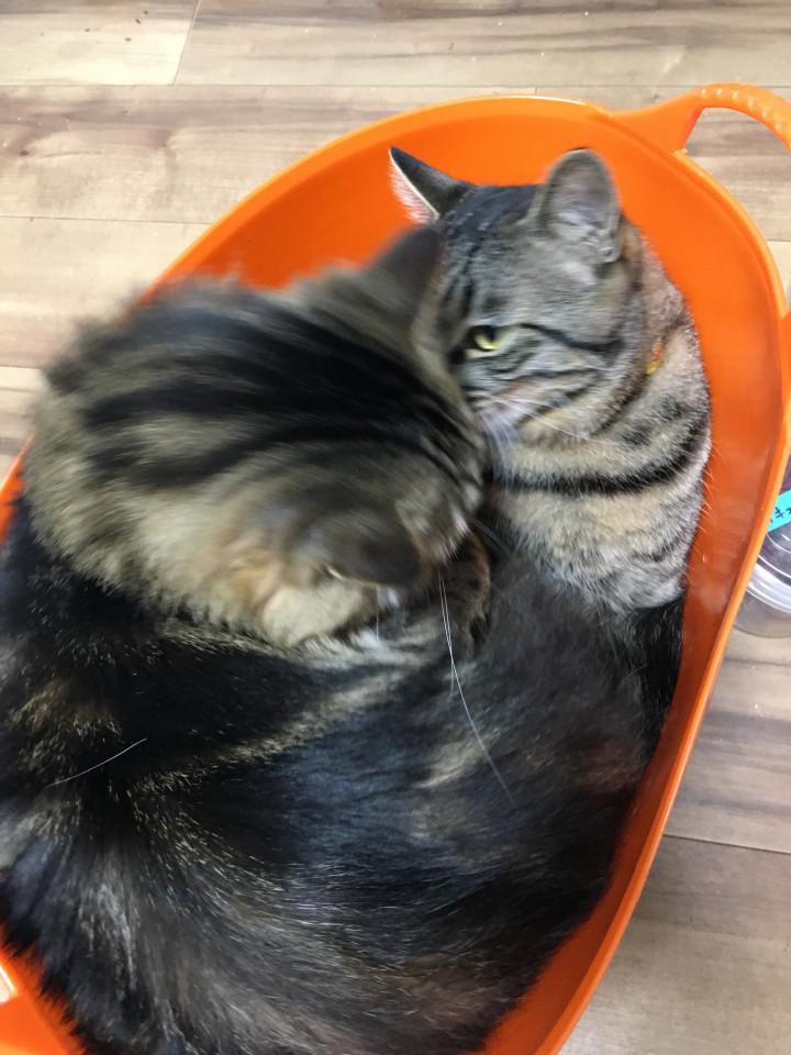 虎太朗🐯さんが入っていたバケツに無理矢理入る7kgオーバーのあんず兄さん。