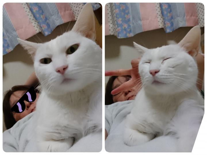 出勤前、探すと娘の部屋で寝転がっていた。なでなですると、ウニャンってお腹を見せる体勢に。