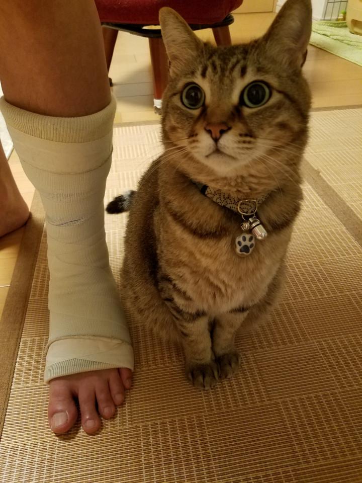 ダンナさんの言うことにゃ、職場で階段を踏み外し受診し骨折と診断される、その夜は麻雀の約束があったけど、「頭と手は使えるからいいか」と思い麻雀参加、午前1時に帰宅し、目を覚ましたカリタに一言「骨折した」・・・とこういう流れだそうで・・・。