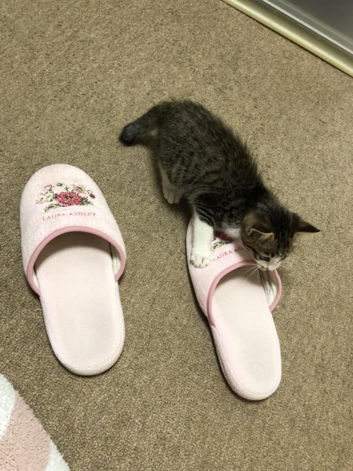 猫ちゃんはスリッパ気になるのかな??