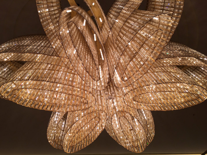 赤いじゅうたんの敷かれた 金ぴかアイアンの手すり階段に