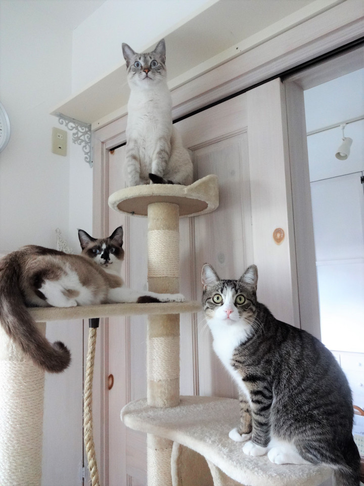 我が家の大階段?キャットタワーに並んだ子猫sたち