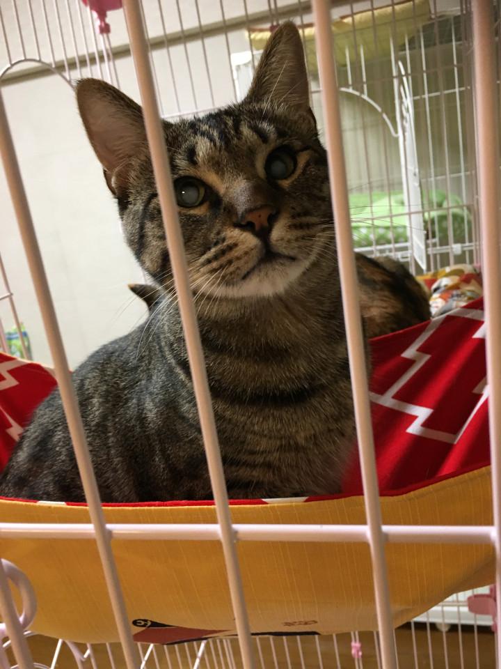 約1年前、外で産まれ栄養が足りなくて生まれつきの白内障の恵くん。
