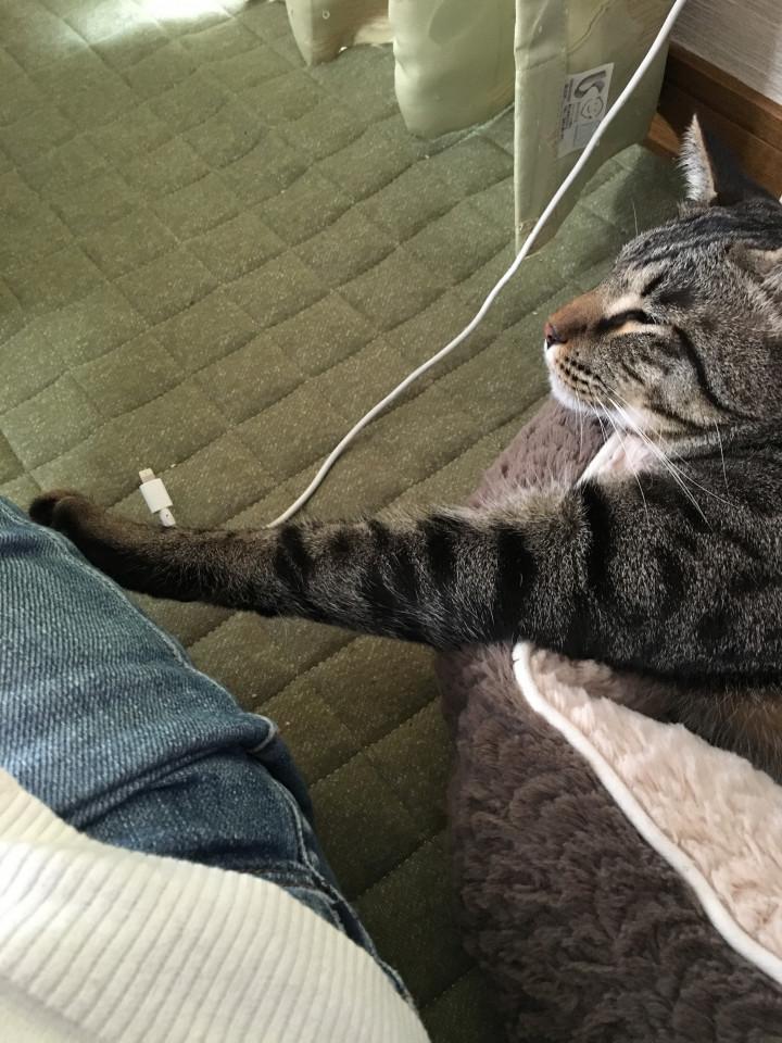 私の隣で寝てるなーって思ったら、やっぱり手を伸ばして来ました。