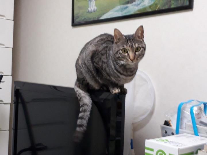 テレビの上に器用に乗るむうちゃん!