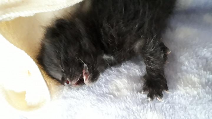 夕方にお迎え。先生いわく、シマちゃんは自力で吸うがクロちゃんは駄目っぽいと。カテーテルによる強制給餌をしたけれども、もう腸が動いていないっぽいと。断言はしなかったけれど、もう保たないとわかっていた様子。お迎えの段階で口を開けて脱力していたクロちゃん。
