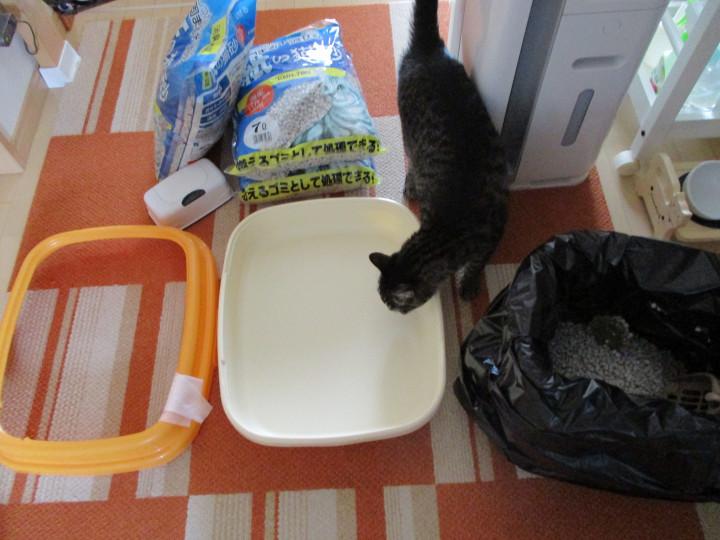 猫砂は、システムトイレ➡鉱物系を経て、現在の紙の砂に落ち着きました。
