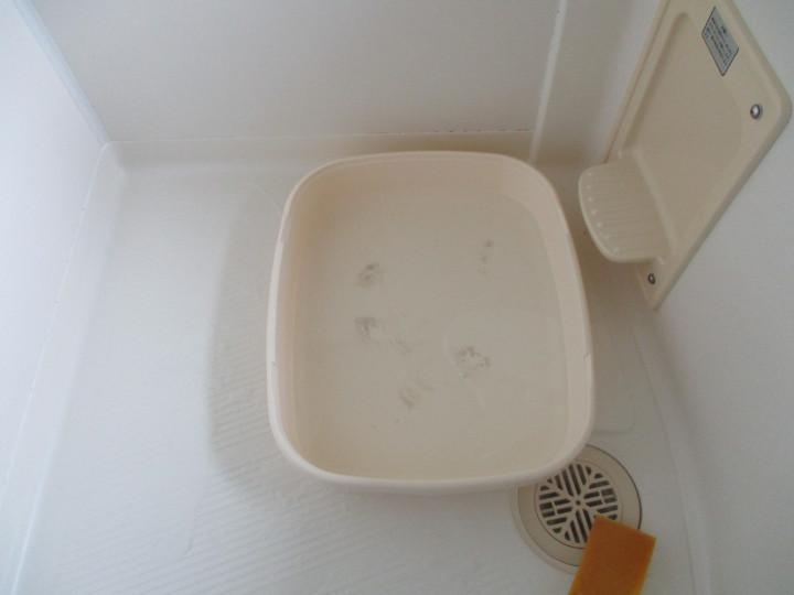 空のトイレは風呂場で洗います。洗剤は使わずスポンジだけで。