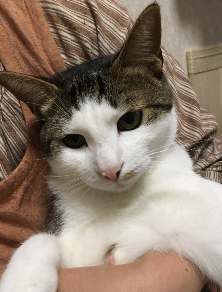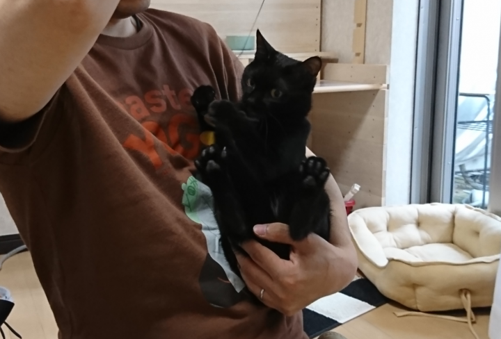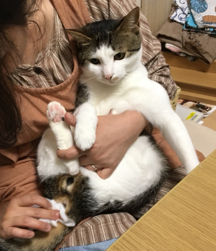 こまちは夫に抱っこされたままじゃれるという省エネ仕様。