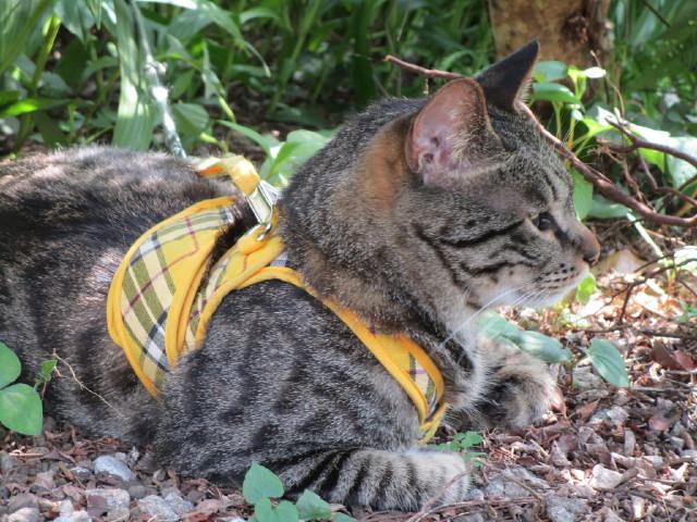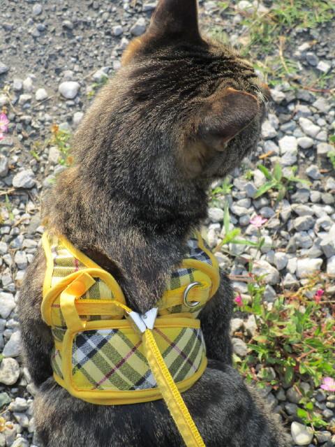 そうそう、ハーネスを脱ぐときはお猫は、後ろに下がってエビの脱皮みたいな姿勢になるんですよ~。