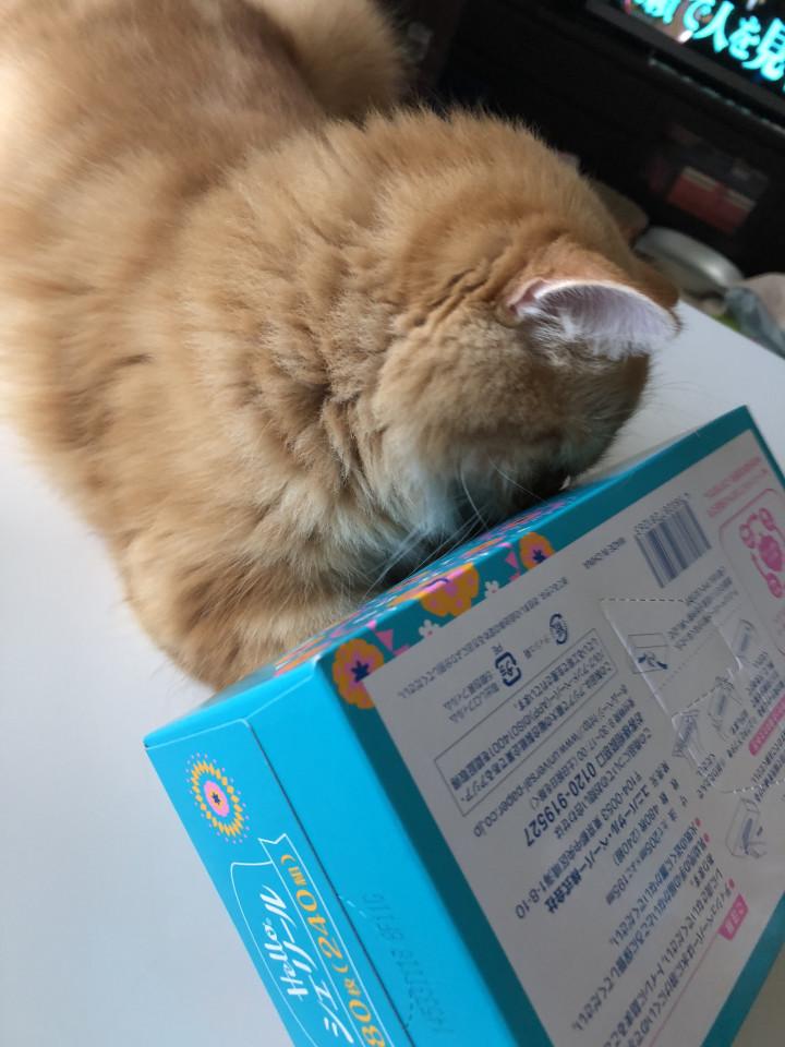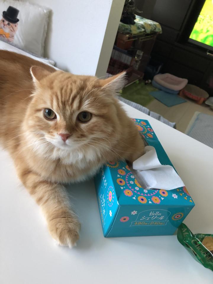 今朝、テッシュの箱に手を突っ込んでいるところ。