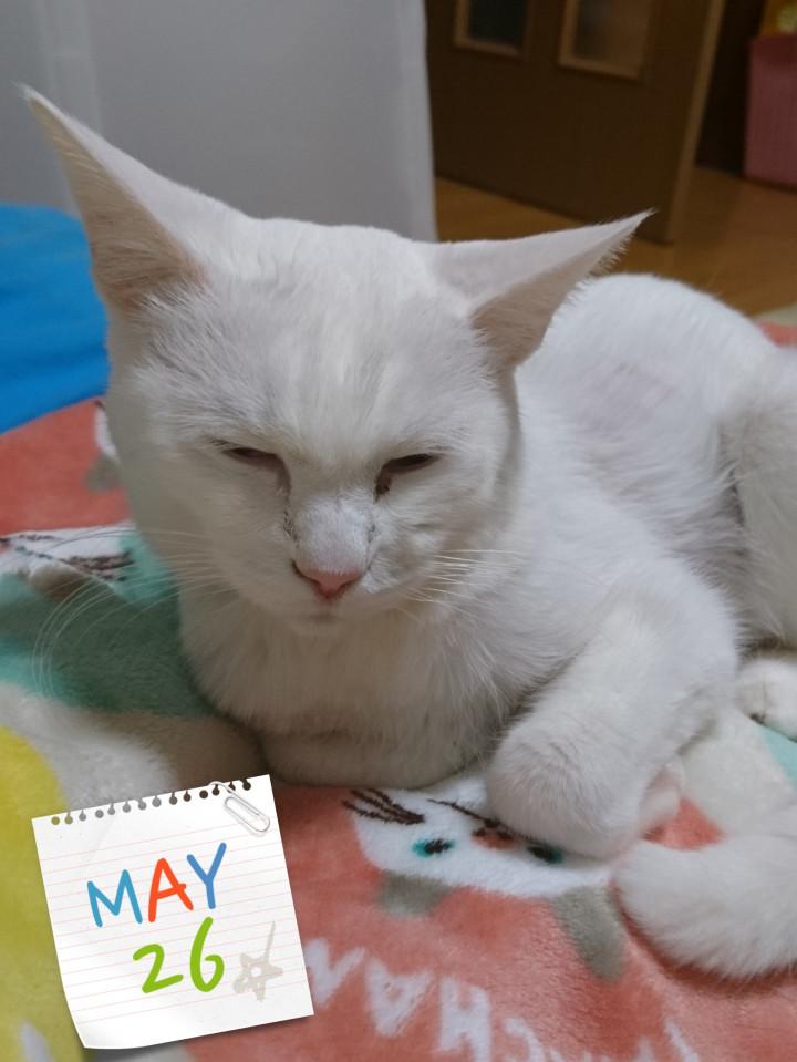 過ごしやすいところを探して、暑い日は、風の通る長女の部屋に行っていたり、脱衣所の床で横たわっていたり、夜はまだ毛布の上でフミフミしたり。