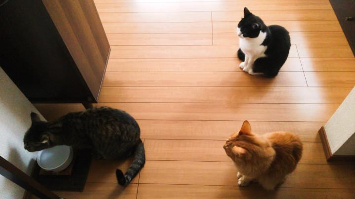 誰かに声を掛けながら撫でれば、別のコが割り込んで来る