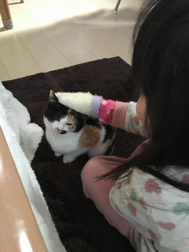 娘が手袋して撫でてるのは、引っかかれるとかではなくルナが怖がらないようにとのこと