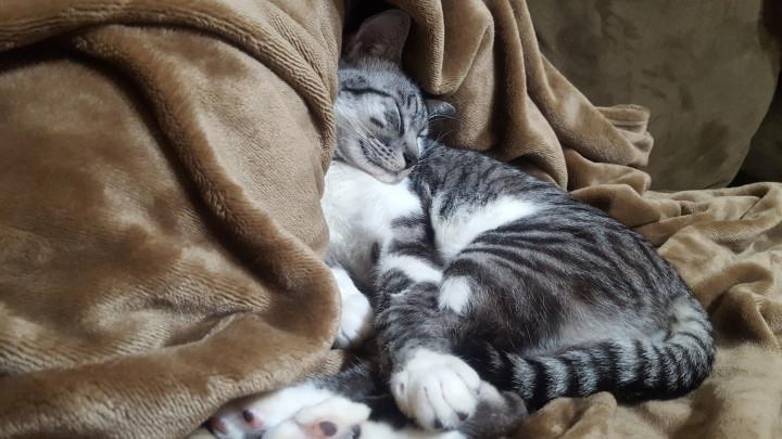 雨だから眠いみたいです。寝てるゆずを見てるとつられて眠い( ´・ω⊂ヽ゛