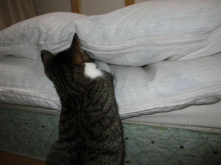 掛け布団カバーとシーツを洗いたてに交換しようと寝室に入ったら…。