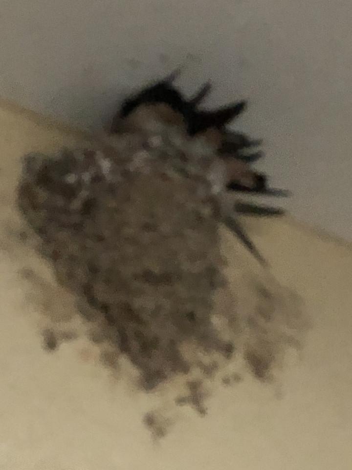 昼間見ると巣は空っぽになってまして、夜になると、子供たちが帰って寝てます。巣が狭いので、うちの雛ちゃんたちはお尻を巣の外に出す変わった寝方をしてます。