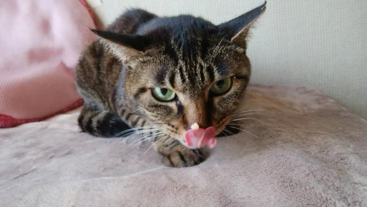 写真はようやく一息ついてチュールを食べるリリィさんです。
