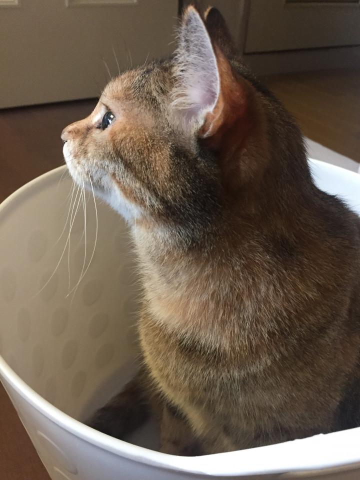 久しぶりに洗濯籠にinして、夜空を見つめていた横顔が優しく撮れました。