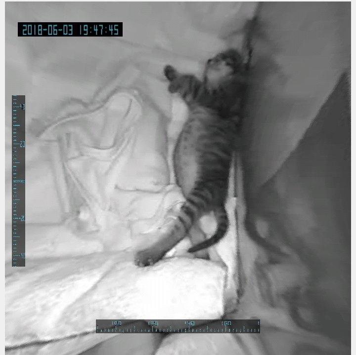 暗視カメラでとらえたシマちゃんの優雅な寝相。
