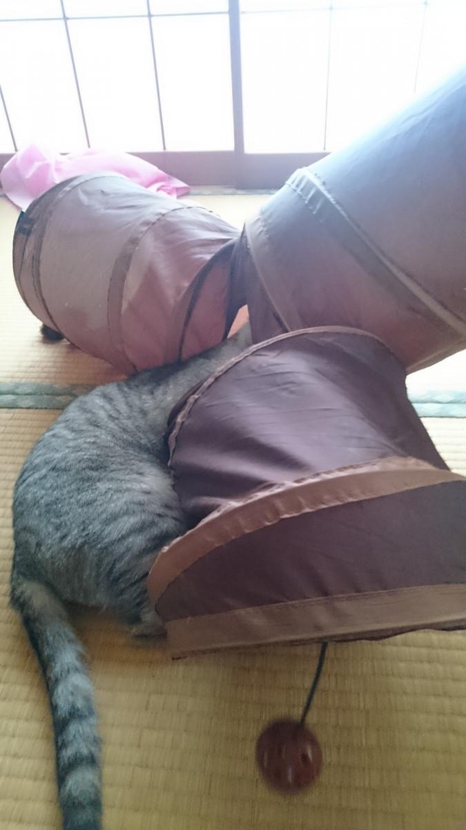 猫トンネルは和室に置いてあるのですが、リビングで私が立ち上がるたび