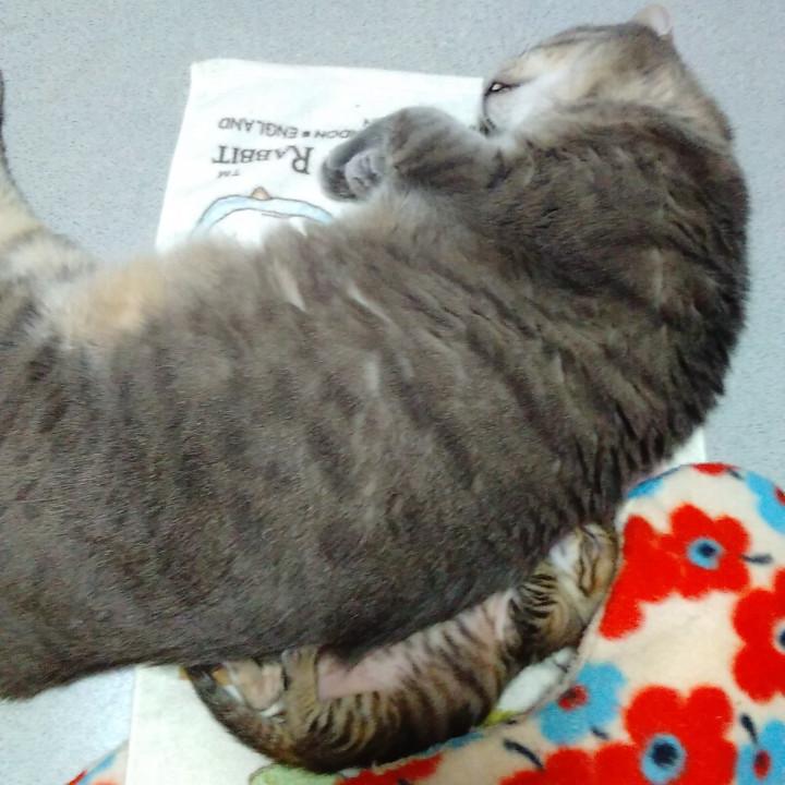 ろくちゃんと添い寝してる夢でもみているんでしょうか?びっちゃん。