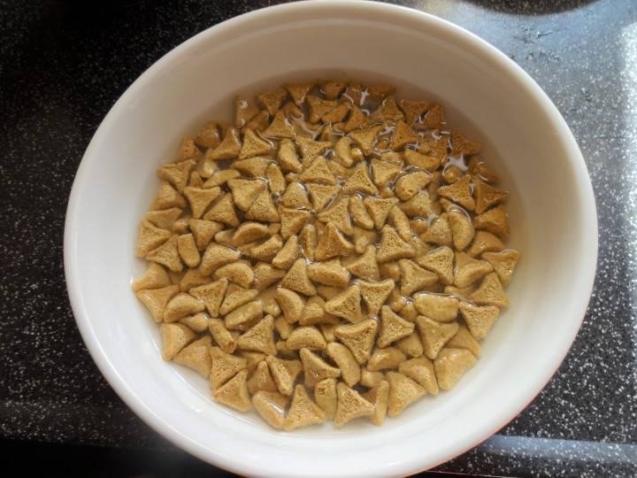お湯を沸かして60℃前後に冷まし フードをふやかします。