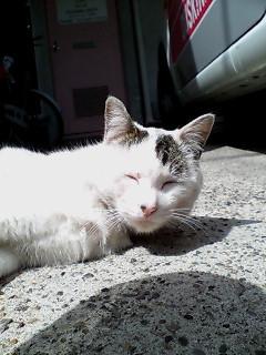おーっ。やっとこっちを向いてくれたね~。陽があたってポカポカだね。正面から見るとまだ“への字”眉毛なんだね。
