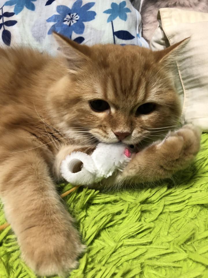 今日はレオのご褒美に新しいネズミさんのおもちゃと、ゴムボールなどを