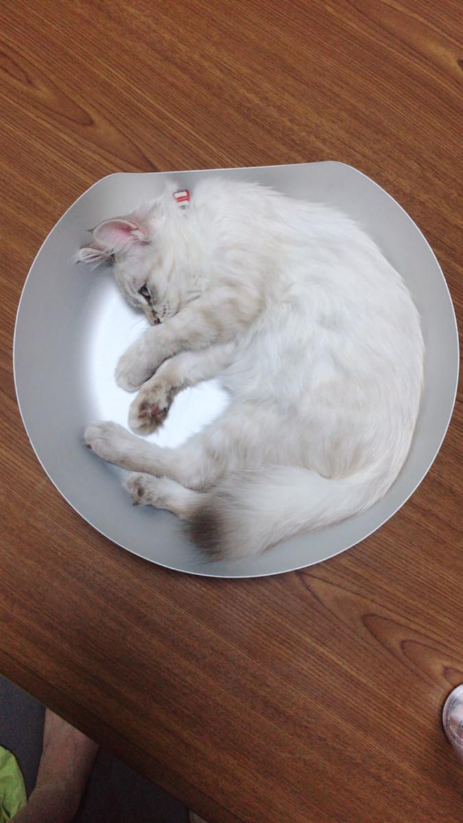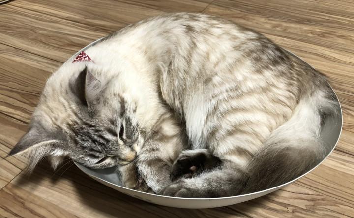 ぷりんはねこ鍋に入って丸まってます!
