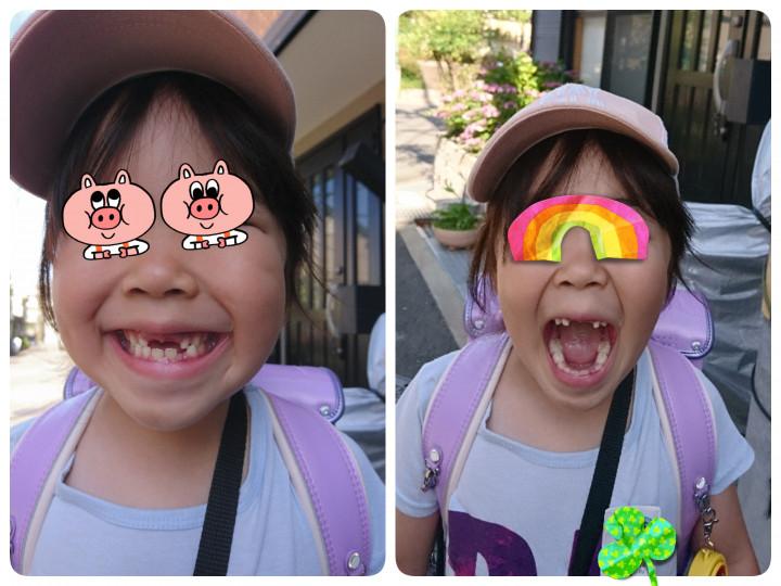 (もともと前歯が1本抜けてて、その隣の1本と下の左側1本が抜けました)