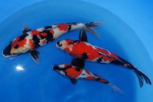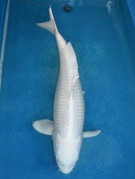 上が《昭和三色》という錦鯉で、下が《プラチナ》という錦鯉です(^^)