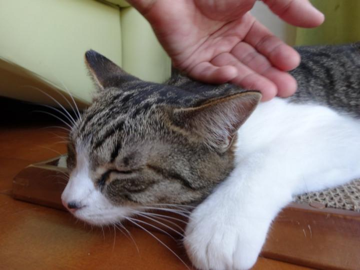 父ちゃんLOVEなミーコからは、猛烈な撫でて撫でてアピール。
