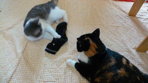 遊んでる時だけ鳴くのを忘れる様なので、今もオモチャ片手に日記書いてます。(TT)