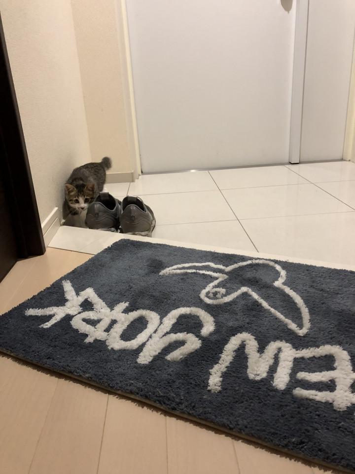 最近玄関がお気に入りのもんちゃん💕