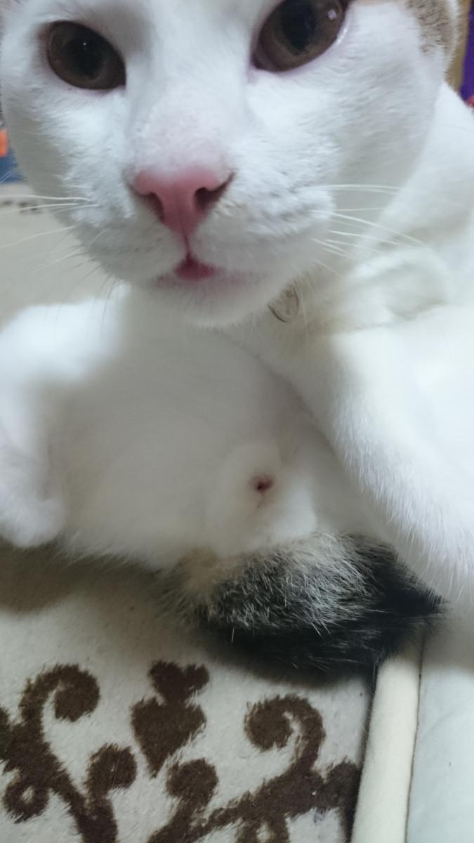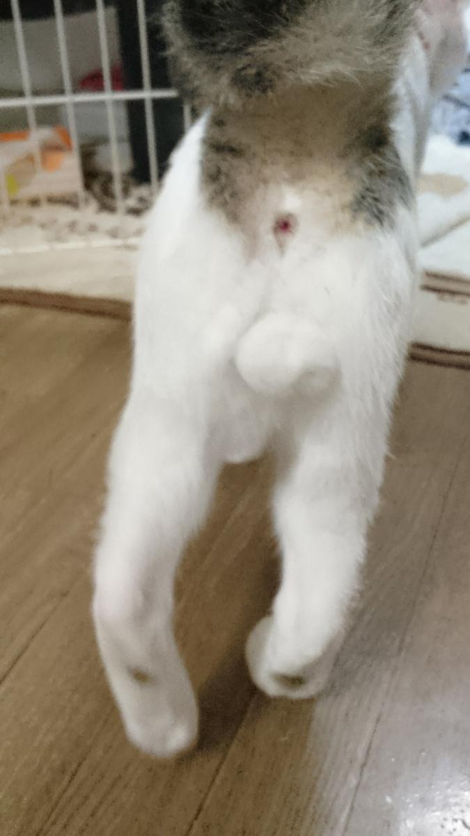 最初貰ってきたときは雌猫と思っていたので股に膨らみがでてきた時はとても驚きましたが、いつも可愛いなあと思っていたふぐり。