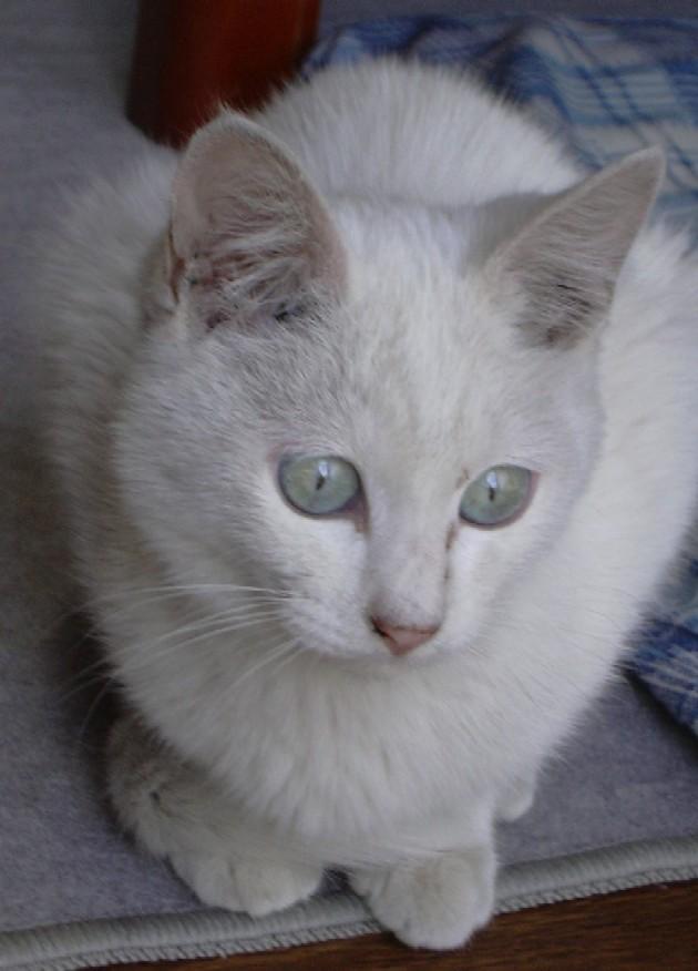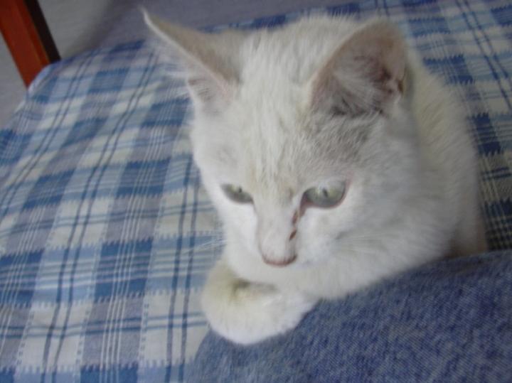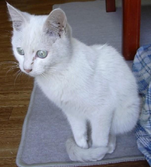 3年近く前春の夜、夫と散歩をしていたら、5ヵ月位の子猫が付いてきました。何処かの飼い猫かと思い、近くをグルグルと回ったのですが、何処までも付いて来ます。1㌔位回って、飼う事に決めました。家に連れ帰ってみたらこんな子でした。