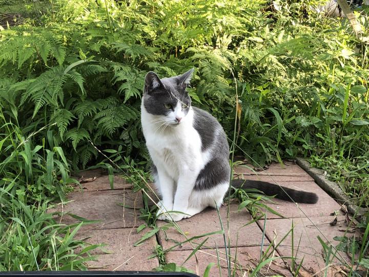 庭の草むしりをしながら、ときおり猫達を撫でくりまわす。