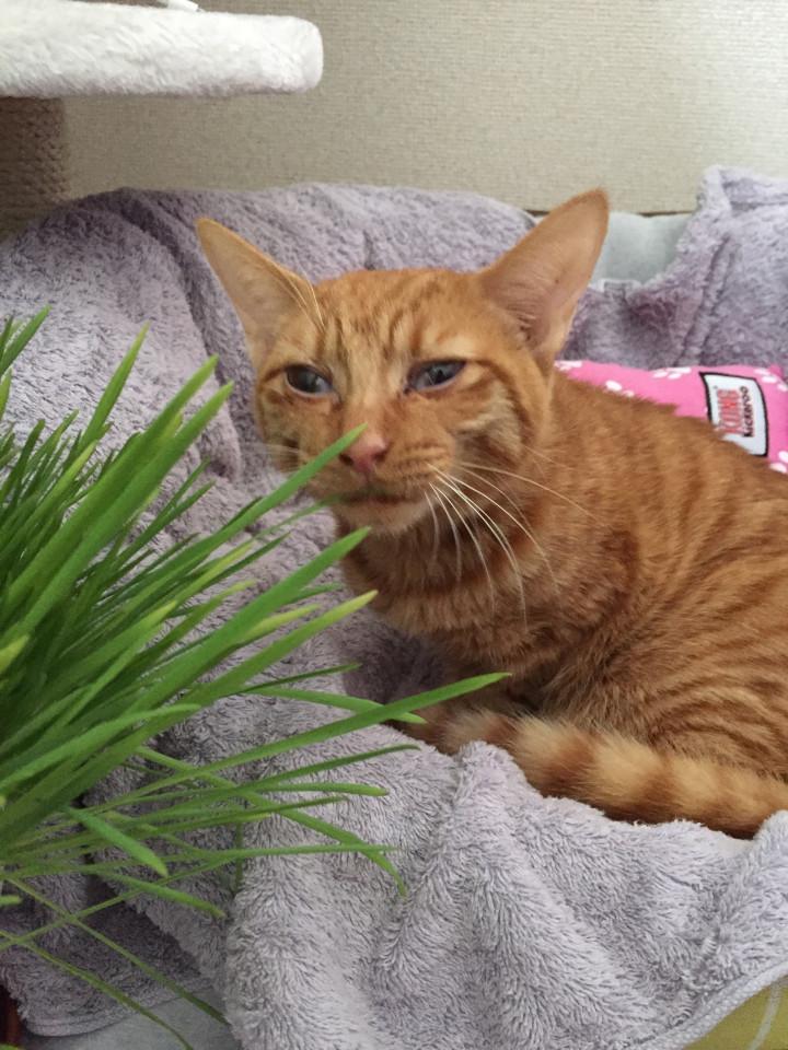 この頃に食欲がほぼ廃絶。最後に舐めたのはスタミノール、食べようとしたのは猫草でした。
