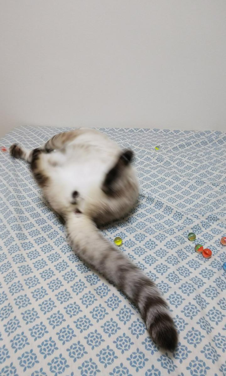 すると、あ、そうそう!と、布団をはがし、おにぎりの好きなビー玉を