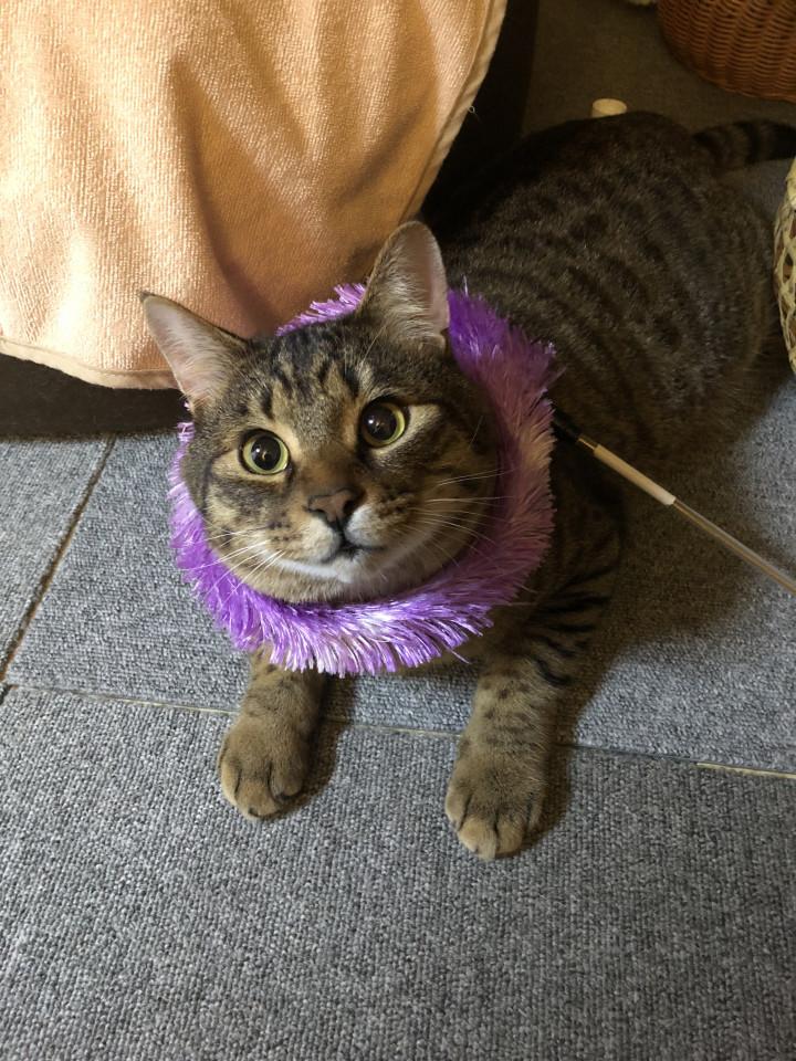 ちょっと長めのじゃらし首に軽く巻かれたアベルw