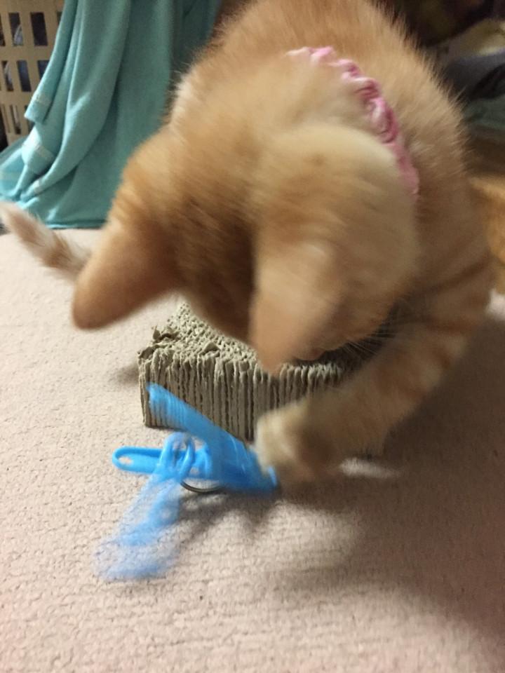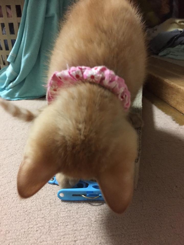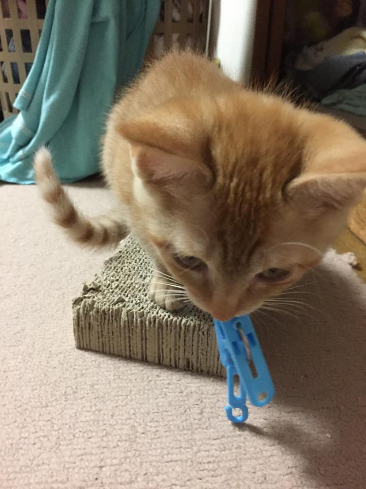 にゃにゃんは今洗濯バサミに夢中で見つけたら熱心に遊びます😄