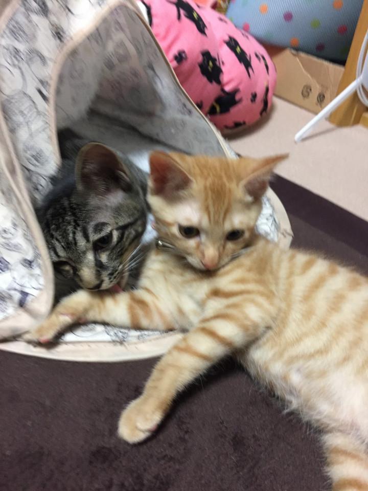 にゃあは1人まったりと過ごすのが好きで2人がひっつきに行くと怒らず迎えますがペロペロして少ししたらスーッとフェイドアウトしてまた1人でまったりします。