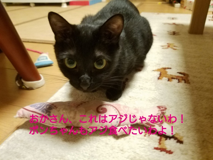 魚と格闘するポンちゃんには、脂が乗ったアジはやれないな~😁